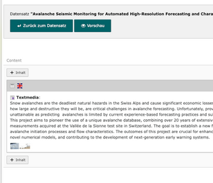 - Im Tab «Inhalte» (5. + 6.) können die Texte und Dateien eingefügt /angepasst werden.
